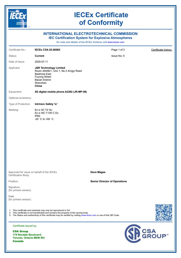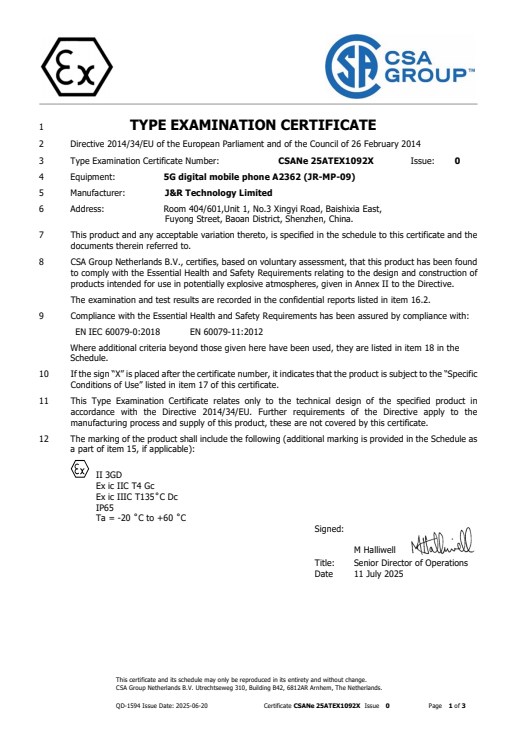 IECEx for Ex Mobile Phone JR-MP